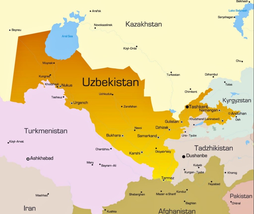 Tarih boyunca ‘Türkistan‘ olarak anılan Orta Asya; denize kıyısı olmayan, bozkırların ve yüksek dağların hüküm sürdüğü, stratejik öneme sahip devasa bir coğrafyadır. Bugün Kazakistan, Kırgızistan, Tacikistan ve Türkmenistan ile birlikte Özbekistan da bu coğrafyanın kalbinde yer alıyor. Özbekistan’ın konumu nedeniyle onu dünyadaki pek çok ülkeden ayıran başka bir coğrafik özelliği daha var. Özbekistan “double-landlocked“, yani denize ulaşmak için en az iki ülkenin sınırından geçmek zorunda olacağınız dünyadaki iki ülkeden birisidir (diğeri Lihtenştayn).