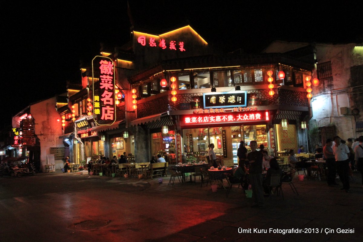 Yemek sonrası eski Huangshan’ı gezdik. Burası çok otantik bir yer çıktı. Gece ışıl ışıl bir cadde (Song Street) boyunca dizilmiş dükkanlar vardı. Maalesef burada yeteri kadar zaman geçiremedik. Yarın geceyi Huangshan Dağında geçireceğiz ve sonraki gece ise saat 22:40’da Shanghai’ya uçacağız. Bir umudumuz dağdaki aktiviteleri erken bitirip şehre erken dönebilmek ve yeniden şehrin bu eski kısmını gezecek zamanı bulabilmek.