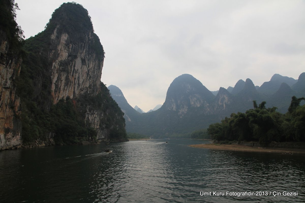 Li River üzerinde tekne ile 80 km’lik bir yolculuk için Guilin’den ayrıldık. Yaklaşık 20-30 Dakika süren bir yolculuk sonrasında teknelere bineceğimiz limana vardık. Bu yolculuk 4 saat sürecek ve 460 km kadar olan Li Nehrinin bir kısmını tekne ile gezeceğiz.