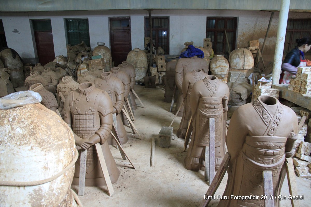 IMG_8080Buraya gelmeden önce bir toprak heykel yapım yerine götürüldük. Bu tabii ki bir satış yeri ama buraya gitmekten memnun olmadım değil. İçeride bu askerlerin yapımı hakkında bilgi veriyorlar. Bu heykellerin her birine farklı bir yüz ifadesi  verebilmek için kalıp sistemini kullanmayıp, kat kat kil topraktan heykelleri yaptıklarını öğrendik. 8000 Tane asker yapmak için ne kadar zaman ve iş gücü kullandıklarını düşününce insan yapılanın ne kadar büyük bir eser olduğunu anlıyor.