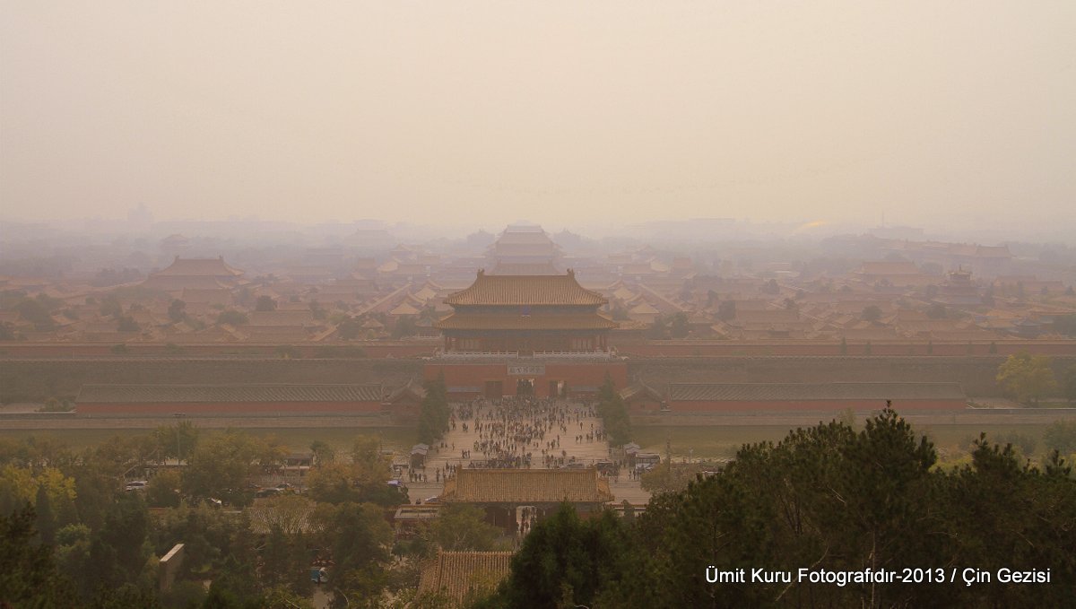 Jingshan Parkı aslında yapay bir tepe ve 230000 m² lik bir alanı kaplıyor. Aslında Yasak Şehir’in devamı olarak imparatorluk parkı ancak günümüzde halka açık olan bir yer. Benim burayı da Yasak Şehir gezisine katmak istememin nedeni, Yasak Şehir’in buradan panoramik fotoğrafını çekebilmek isteğimdi. Teoride doğru ama o günkü havanın puslu olması nedeni ile pratikte işlemeyen bir plandı. jingshan Parkının tarihi 1000 yıl öncesine gidiyor. Yasak Şehirden çıkan toprak ile yerden 45 metre yükselen bir tepe yapılmış. Bu parkta gittikçe yükselen 5 adet tepe var ve her bir tepede bir köşk var. Bu tepeler Feng Shui felsefesine göre Yasak şehirin sırtını dayayacağı bir tepe var olması için inşa edilmiş ve aynı zamanda da Kuzeyden gelen rüzgarları kesmesi gibi pratik bir işlevi de var. Ming Hanedanlığının son imparatoru Chongzhen kendini bu tepede asarak intihar etmiş.