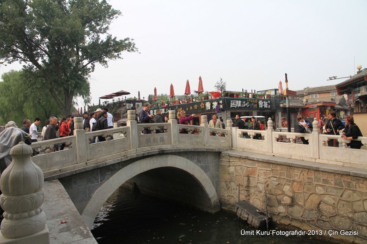 Bu cadde ise Shichahai bölgesine açılıyor. Burası Pekin’in sulak bölgesi ve burada Qianhai, Houhai ve Xihai adlı göller var. Yinding adlı çok güzel bir mermer köprü Qianhai, Houhai gölleri üzerinde bulunuyor. Burayı çok sevdik. Bu bölgeyi kaçırmayın derim.