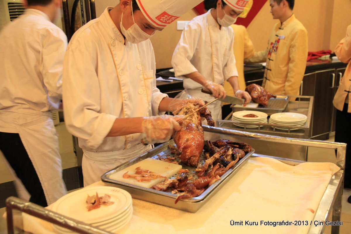 Pekin’e kadar gelinir de Pekin Ördeği yenmez mi? Biz de akıllı işi yaptık ve iyi bir restoranda Pekin ördeği yedik. Quanjude Restorant’da yediğimiz Pekin ördeği muhteşemdi doğrusu. Pekin’e bir daha gelmek kısmet olur da hiç bir şey yapamazsam, yapmak için tüm çabamı göstereceğim tek olay bu olur. Yani neymiş? Pekin’de, Pekin ördeği iyi bir yerde mutlaka yenecek…