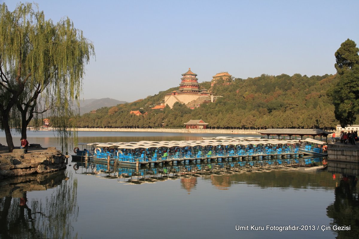 Saat 09:00 gibi bahçede olduk. Ortalık sakin sayılır. sabah sporlarını yapmış olan Çinliler evlerine dönüyorlar. Tekneler daha çalışmadığından Mermer Gemiye kadar yürümeye başladık. Aslında genelde yapılan; girişe yakın bir limandaki ejderha başlı teknelerle, Mermer Gemiye kadar gidip, oradan geziye başlamak. Biz tersini yapacağız. Sabahın bu güzel saatinde bu gezi daha da güzel oldu.