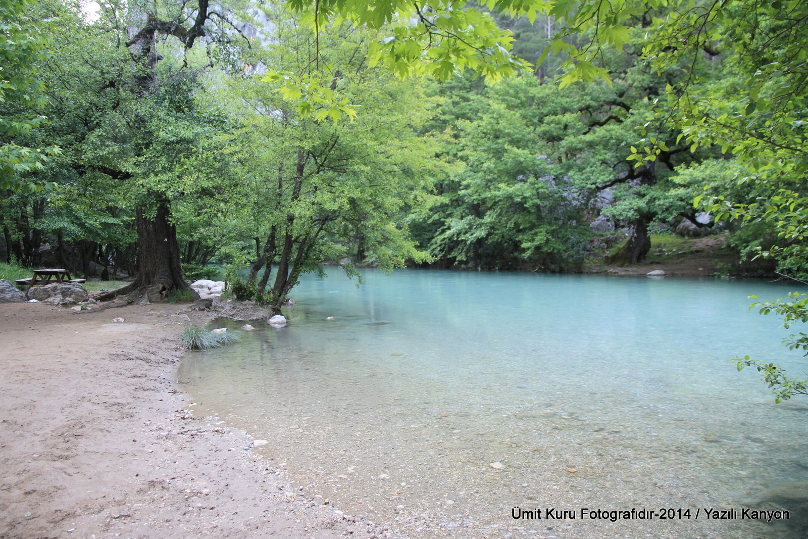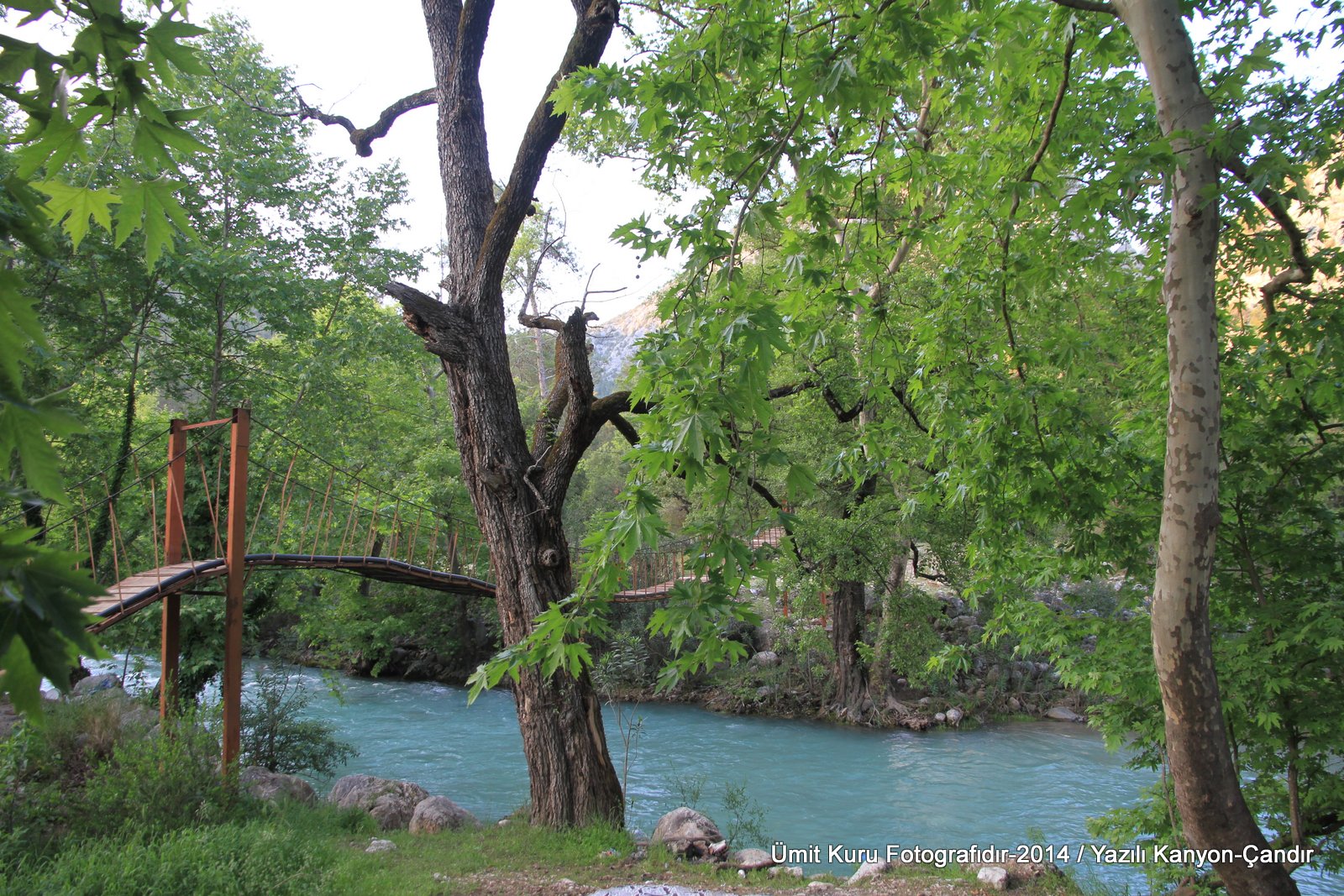 Bu yazıttan sonra yaklaşık 1-1.5 km kadar yürüyerek suyun şelaler yaptığı geniş bir düzlük alana gelirsiniz. Burası özellikle baharda sarılı, beyazlı, morlu çiçeklerle dolu oluyor. Bu yolu geri dönüp, yazıtın bulunduğu yerden köprüyü geçmeden devam ederseniz bu sefer diğer kıyıdan yürüyüp, köprüyü geçip kanyon girişine ulaşırsınız. Köprüyü geçmeden kıyı boyunca yürürseniz de kanyonun sonundaki alabalık çiftliklerine ulaşabiliyorsunuz.