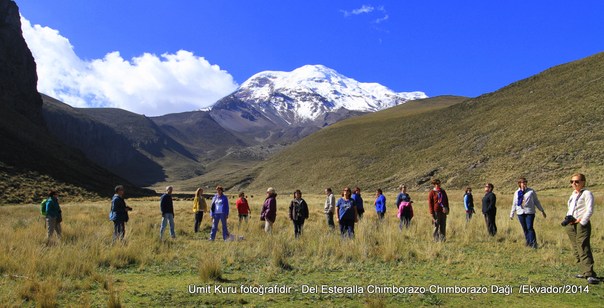 Tekrar yollara düştük ve And Dağlarının güzel manzaraları eşliğinde yola devam ettik. Bir süre sonra karşımıza en güzel hali ile Chimborazo Dağı çıktı. Etrafta ise lamalar, Vikunyalar görülmeye başladılar. Bu dağı bu kadar açık bir havada ve bu kadar net olarak karlı tepeleri ile görebilmek büyük bir şanstı bizim için.