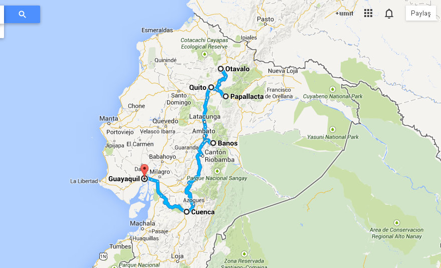 Ekvador, bu gezide gittiğimiz ülkeler arasında en geniş gezdiğimiz ülke oldu. Bunda ülkenin, diğerlerine göre daha güvenilir ve turizmi daha yerleşik olmasının etkisi oldu. THY ile doğrudan Buenos Aires üzerinden gece konaklamalı ve aktarmalı gittik. Ancak diğer uçak şirketleri ile aktarmalı olarak doğrudan Quito’ya uçabilirsiniz.