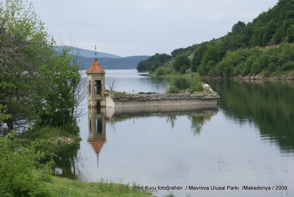 SONY DSCTetova’dan sonra Mavrovo Ulusal parkına doğru gidiyoruz. (Tetovo-Mavrovo  arası 76 km). 73000 hektarlık alanı ile Makedonya’nın en önemli ulusal parklarından olan Mavrovo’da 1200 mt rakımlarda suni bir göl vardır. Kış turizminin de önemli yerlerinden olan Mavrovo’da yeşil artık gözlerimizi kamaştırmaya başladı. Bizden başka kimse yok gibi. Göl çevresinde bir tur atıyoruz. Stefan’dan aracı durdurmasını rica ettim. Yarım saat kadar süren bir yürüyüş yaptık. O kadar çok fotoğraflanacak şey var ki! Çilekler daha çok yeşil.  Burada bir tam gün geçirebiliriz ama yol uzun. Kışın ne kadar güzel olur burası!    Mavrovo’dan ayrılmak çok zor oldu. Ama hava iyice kapandı. Bulutlar yere fazla yakın, acele etmek lazım. Sırada Rostuse köyü ve Şelalesi ile Sveti Jovan Bigorski Kilisesi var.