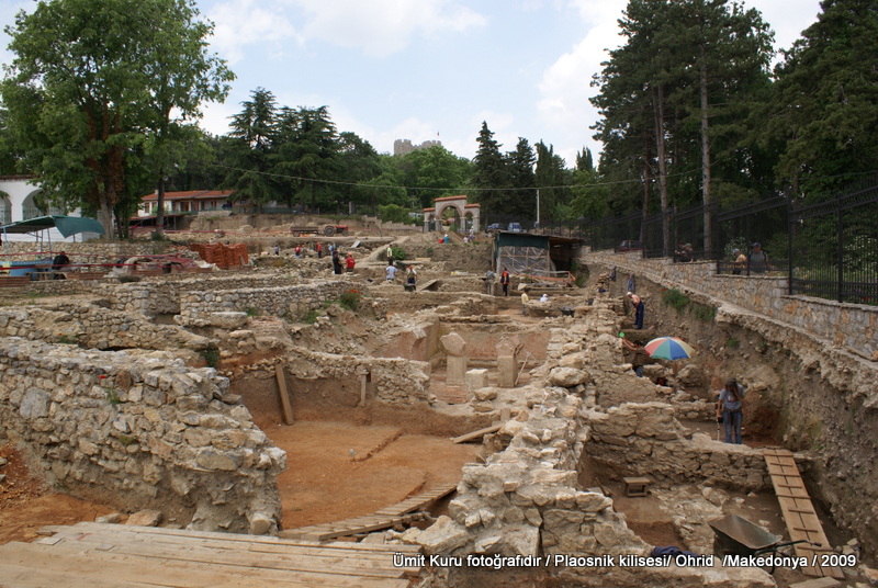 SONY DSCZiyaret ettiğimiz diğer bir kilise de Plaosnik kilisesi. Bu alanda kazı çalışmaları vardı. Burada Bizans dönemine ait eserler çıkartılıyor ve bahçede bu dönemden mozaikler var. Ama buradaki kilise çok yakın tarihte, 2002 yılında yapılmış. Burada aslında bir kilise varmış. Bu kilise yıkılınca, yıkıntılar üzerinde Osmanlı bir cami yapmış. Bu camiyi Makedonlar yıkıp, yerine 2002 tarihinde bu kilise yapmışlar. Sevgili Cengiz bu hikayeyi çok kızgın şekilde anlattı. Makedonların, önce Türklerin burada olan Kiliseyi yıkıp yerine cami yaptıkları için bu olayı gerçekleştirdiğini anlattı ve devam etti “ Aslında burada bulunan kilise Türklerden önce yıkılmıştı ve Osmanlı bu yıkık temel üzerine cami yapmıştı”. Bu olay, bu bölgedeki Türkleri ve Arnavutları çok etkilemiş.   Keşke cami yanında kiliselerini yapsalardı, 550 yıllık camiyi yıkıp yerine yeni bir kilise yapmak en azından tarihe saygısızlık. Bunun adına, kim yaparsa yapsın, “Vandallık” denir.    SONY DSC