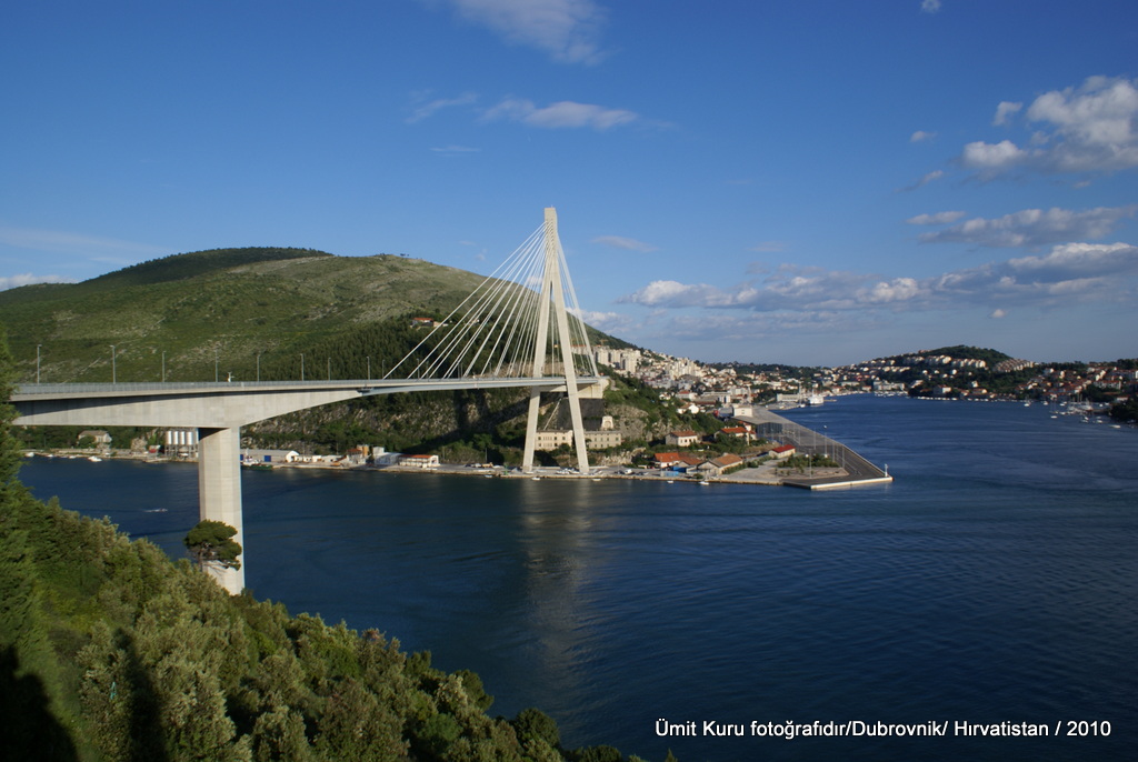 Sabah, hanımla, kahvaltı öncesi sahil yürüyüşümüzü bu kez de Dubrovnik’te yaptık. Dün üstünden geçtiğimiz Franja Tudmana Asma Köprüsü, kaldığımız otel bölgesinden de muhteşem görünüyor.