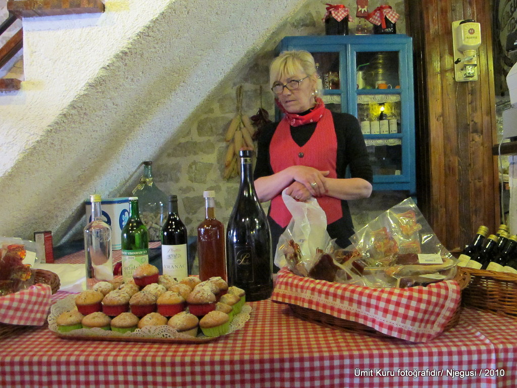 Lovcen Dağlarında uzun bir tırmanış sonrasında tepede Njegusi denen bir köyde durduk. Öğle yemeğimizi geç yiyebileceğimiz için bu köyde, Konoba adlı bir restoranda hazırlamış oldukları sandviçleri yedik. Bu köyün iki özelliği var; bir tanesi 1696-1918 yılları arasında Karadağ’ı yönetmiş olan Petrovic sülalesinin çıkış yeri olması ve diğeri de bu köyün ürünlerinin tamamen organik ürünler olması. Gerçekten o küçücük sandviçin içindeki peynir ve et muhteşem bir tada sahiptiler. Hata yaptım, orada satılan peynirlerden almadım.