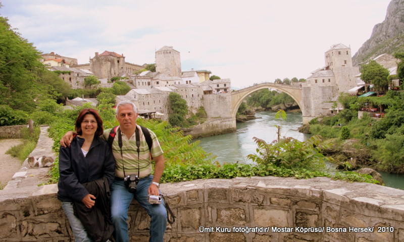 Kısa ve zevkli yürüyüş yaptıktan sonra Mostar Köprüsü karşımızda gözüktü. Mostar Köprüsü, Neretva Nehri üzerinde Kanuni Sultan Süleyman zamanında, Mimar Sinan’ın öğrencisi Mimar Hayrettin tarafından 1566 yılında inşa edilmiş. Yirmi altı metre yüksekte 30 metre uzunluğunda, 4 metre genişliğinde olan köprünün yapımında 456 kalıp taş kullanılmış. Taş köprünün yapımında tenelija adı verilen yöreye has hafif fakat yeterince güçlü bir oolitik kireçtaşı, beden duvarlarının inşasında breça denilen ve nehir kıyısı boyunca bol miktarda bulunan bir çeşit yuvarlak çakıllı konglemera, köprü döşemesi üzerinde ise kreçnyak denilen ve adeta mermer sertliğinde olan kireç taşı kullanılmış.