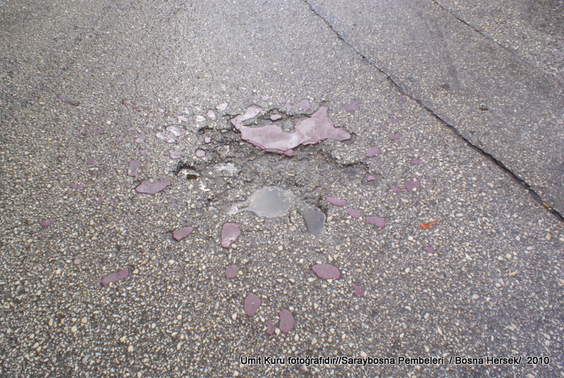 Saraybosna’da da Mostar gibi kurşun izlerinin bulunduğu çok sayıda bina mevcut. Burada gördüğümüz bir diğer savaş izi ise yerlerde bulunan pembe renkli izler. Bu izlere Saraybosna Pembeleri veya Gülleri ismi veriliyormuş. Bu izler düşen bombalar ve sonucunda ortaya çıkan ölümün izlerini yani kan izlerini gösteriyor.