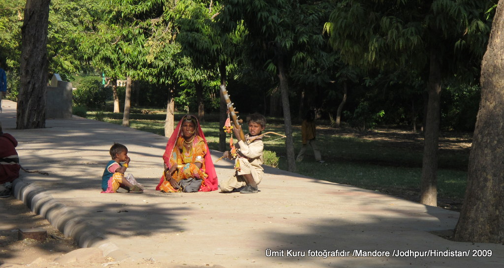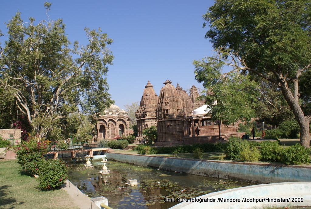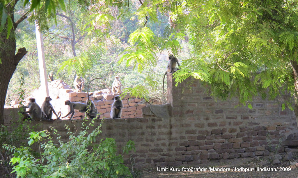 Gezimizin bu ikinci gününde erken uyandık. Kahvaltı, Hindistan’da otellerde yaptığımız en doyurucu kahvaltılardandı. Daha sonra rehberimizle gelen aracımıza bavullarımızı da yerleştirip, Jodhpur’un 8 km dışındaki Mandore denen yere doğru hareket ettik. Burası 6. Yüzyılda Marwar denen bölgenin başkenti imiş ve 1381 yılında Rathore hanedanlığının eline evlilik yolu ile geçmiş. Buraya girer girmez hemen ellerinde çalgıları ile çocuklar çevremizi sardılar ve iç gıcıklayıcı parçalar çalmaya çalıştılar; her şey bahşiş için. Çocuklara bahşiş verme işi Hindistan’da yasa ile yasaklanmış durumda ama sadece kağıt üzerinde. Bahşiş verme işini yapacaksanız ziyaret ettiğiniz bir yere ilk girdiğinizde asla yapmayın, nereden çıktığı anlaşılmayan şekilde bir sürü insan çevrenizi sarıyor. Verecekseniz oradan ayrılırken yapın. İlk maymunlarımızı da burada gördük, çok rahatlar ve duvar üstünde sizi takip ediyorlar.