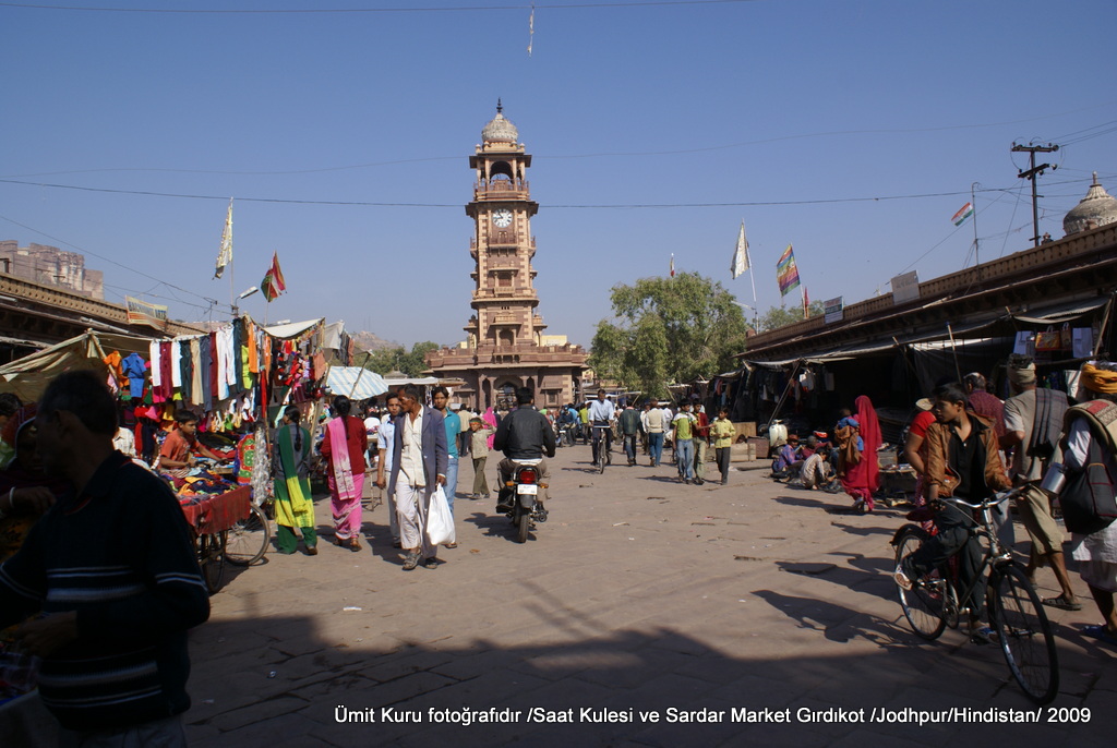 Jodhpur Rajastan’ın ikinci büyük kenti ve 1000000 civarında nüfusu var. Gördüğümüz kentler içinde derli toplu olanlardan bir tanesi. Derli toplu derken bir parantez açmam lazım; Hindistan dünyanın 10. büyük ekonomisi ve Asya ülkeleri içinde de ekonomik büyüklükte 3. Sırada. 2020 yılına kadar dünyanın ticari ilişkilerinde daha da önemli bir yere geleceğine inanılıyor. 2008 Yılında ekonomik krize rağmen büyüme hızı %6.6 olmuş, ancak kişi başı gelir dağılımı 1600 USD civarında. Gezdiğimiz çoğu kentte çöp yığınları vardı ve bu çöp yığınlarında hem inek, öküz, domuz ve hem de insanlar bulunabiliyordu. Gezdiğim ülkeler içinde (haksızlık yapmayayım, belki de bizim gezdiğimiz bölgelerin özelliğidir) en çok fakir insanı gördüğüm yer diyebilirim. Bu saydıklarım sizi asla bu sürprizlerle dolu ülkeye seyahat etmekten caydırmasın, bu fakirlik ve kaos dolu ülkenin her bir köşesinde aniden bir güzellik karşınıza çıkabilir. Kaos dolu dedim ama bu kaos içinde de bir düzen var. Örneğin trafik ve araba kullanmaları bir facia.. Sağ ve sol şeritler, büyük şehirlerdeki ana arterler dışında sadece göstermelik olarak varlar. Herkes, her şeritten gidebiliyor ama kesinlikle bizden daha az kaza oluyordur. Çünkü dört gözle ve dört kulakla araba kullanıyorlar ve biliyorlar ki bu ülkenin adı Hindistan ve herkes sürpriz yapabilir, onun için pür dikkatler. Arabaların arkasında “lütfen kornaya basın” ikazları var. Korna sesi bize bir işkence oldu ama bu uyaran sayesinde uyanıklar diye düşünüyorum. Hijyene dikkat ettiğiniz (bol el yıkama ve el temizleme jeli kullanma, sokak kenarında yiyecek yememe vb) sürece sorun yok. Gece çoğu yerde belli saatten sonra dışarı çıkmamaya dikkat ettik, bunun dışında emniyetli bir ülke sayılır. Çoğu zaman nazik insanlar. İmkanı olan mutlaka sizin fotoğrafınızı çekmeye çalışıyor.