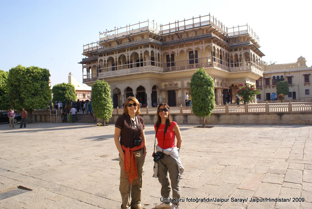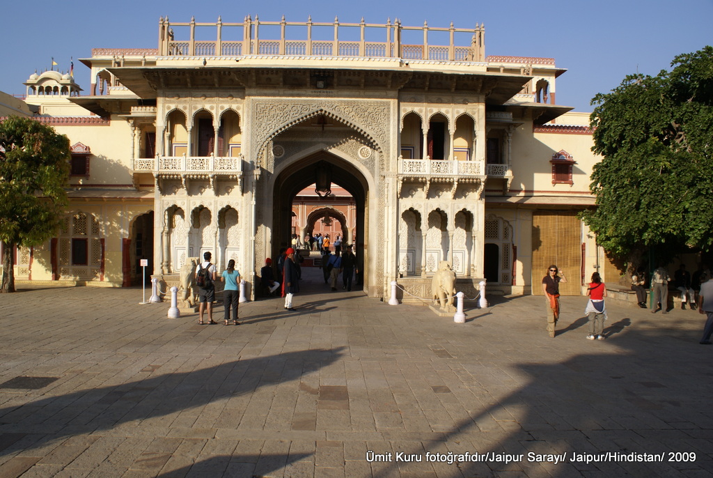 SONY DSCŞehir Sarayı daha sonra göreceklerimizden daha güzel değil. Sizi girişte ince bir işçilikle yapılmış bir bina karşılıyor. Hemen sağınızda ise çeşitli koleksiyonların (elbise, silah, mobilya) yer aldığı sergi salonları var. Bu Saray da hala Mihracenin soyundan insanlara ait. Sarayın bir kısmında hala oturuyorlar. Burada da bir tezat var; Mihraceler buralarda hala varlar, sadece orduları yok, mallarının çoğu hala onların. Sarayın iç kısmında büyükçe bir avlu var. Burada dikkate değer iki tane büyük küp görüyorsunuz. Bunlar bir tarihte İngiltere’yi ziyaret eden Mihracenin yanında Ganj sularını götürmek için kullandığı küpler.