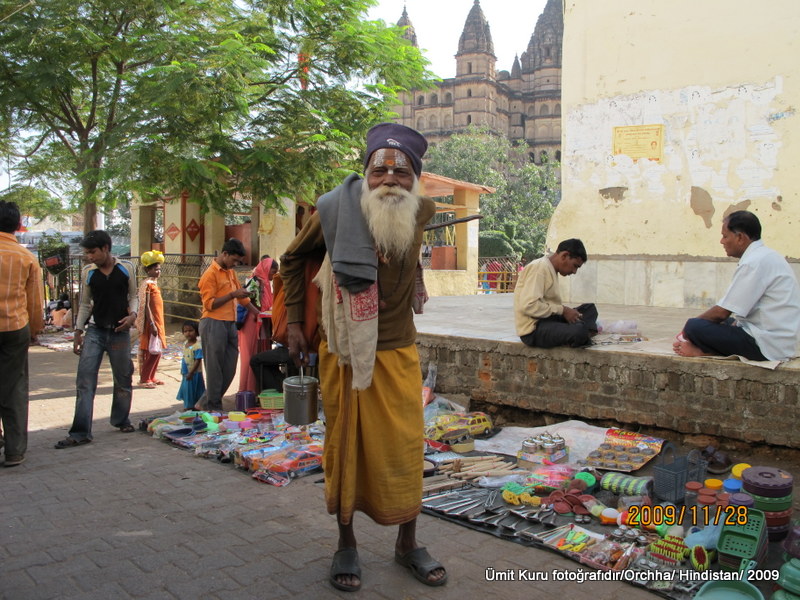 Daha sonra ise Orchha içinde yürüyüş yaptık. Bu köyü çok sevdik. Pazarına girip alışveriş yaptık. Varanasi’de bol bol göreceğimiz Guru’lardan ilkini burada gördük. Hindistan’a geldiğimizden beri tahtadan fil heykellerini gözümüze kestirdik ama hep pahalıydı. Bugün kendimi pazarlık yapma modunda hissettiğimden bu küçük köyün, köye göre büyük turistik caddesinde tahta fil aramaya başladık. Bir dükkanda bulduk, hem de iki tane birden. Ancak burada da ikisi için 200 USD istedi. Agra da aynı ayarda fillere 400 USD isteyerek başlamışlardı ama bu fiyatta pahalı. Bende ikisi için yarısı deyip dükkandan çıktım. Arkamdan söylendiler ama ben elektriği aldım ve dedim ya, bugün pazarlık havasındayım. Biz şehri dolaşırken rehbere bir telefon geldi, ikisine 130 USD’ye razılarmış. Ben bu işi bitiririm deyip dükkana geri gittik, filleri 110 USD ikisi birden olmak üzere aldım. Üstüne bir de Agra da beğendiğim taş kakmalı mermer kutulardan aldım. Biliyorum bu fiyata da kazık yedim. Ama olsun yarı fiyatına almanın sevinci ve haklı gururu var bende.