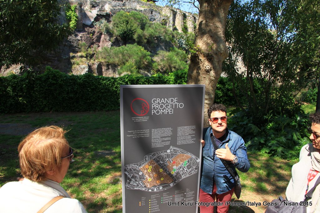 Dönelim gezimize; Burasını gezmek için değil birkaç saat aslında günler harcayabilirsiniz. Caddeler, evler, tapınaklar sanki hala kullanılabilecek haldeler. Bazı evler ve villalar üzerlerinde hala sahiplerinin isimlerini taşıyorlar. Pompeii gezi alanı arkeologlarca 9 bölgeye bölünmüş. Biz 1. bölgede tiyatro ve civarı ile geziye başladık. Tiyatro milattan önce 200-150 yılları arasında inşa edilmiş ve 5000 kişilik.