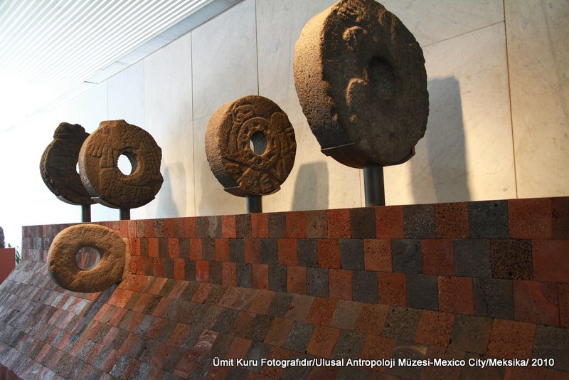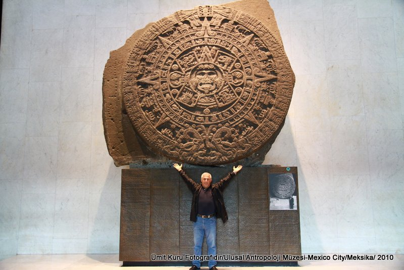 Saat 09:00’da Ulusal Antropoloji Müzesi açıldı. Ulusal Antropoloji Müze gezisi programda bir önceki gündeydi. Ancak yeterli zamanı verebilmek için bugüne ertelenmişti. Çok doğru bir hareket olmakla birlikte, bu zaman bile bize yetmedi. Son zamanlarda gezdiğim en güzel müzelerden bir tanesini gezdim. Müthiş güzel bir müzecilik anlayışı ile sergileme yapılmış. Sabahın erken saatleri olmasına rağmen müze kalabalıktı. Hem dünkü geziden ve hem de bugünkü müze gezisinden edindiğim izlenim; Meksika halkının müze gibi yerleri çok gezdiği oldu. Biraz da turizm mevsiminin açılmamasından dolayı olsa gerek yabancı turistten çok, yerli turist gördük. Müze avlusunda, tam ortada, Meksika kültürlerinden örneklerin gösterildiği kabartma heykeller ile dev bir sütun mevcut.