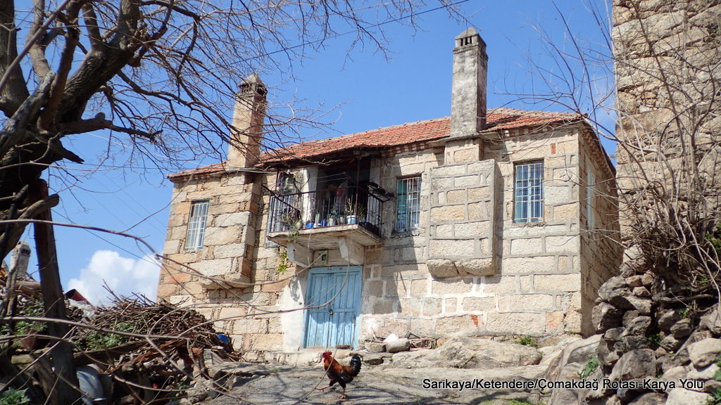 Sarıkaya Köyü ile Gökseki Köyü arası doğa çok güzel. Çiçek ve yol fotoğrafları çeke çeke Gökseki ve Ketendere Köylerini geçtik. Bu köylerdeki taş evler, bugüne kadar gördüğüm taş evlerden farklıydılar. Özellikle de evlerin bacaları çok değişik görünüyor.
