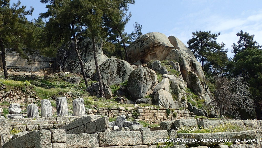 Mutlaka burada rahipler ve aileleri ile hizmetliler yaşıyordur ama civarda yapılan kazılarda yerleşim yeri bulunamamış. Yani Karyalılar için Labraunda sadece kutsal bir alanmış. İnsanlar buraya Milastan başlayan ve 14 km uzunluğunda olan 8 metre genişlikte taş döşeli yolu yürüyerek ya da at sırtında geliyorlarmış. Labranda’nın kutsal alan sayılması hemen yukarısındaki dikkat çekici bir kayaya dayandırılıyor. Bu kaya adeta bir yıldırım çarpmasıyla ikiye yarılmış gibi ayrık duruyor. O dönem insanlarınca bu kayanın, gök tanrısının ikamet yeri olduğuna inanılırmış.