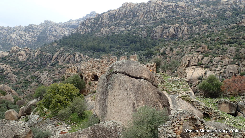 Bu Karya rotasındaki diğer bir durak ise Yediler Manastırı. 7. yüzyılda Anadolu’ya gelen rahipler ve keşişler tarafından inşa edilmişler. Düşmanlarından saklanmak için sarp kayalıklar arasında kalan bu coğrafyada manastırlar ve çilehaneler inşa etmiş ve buralarda inzivaya çekilmişler. Oldukça basit bir yapı kompleksi görünümünde.