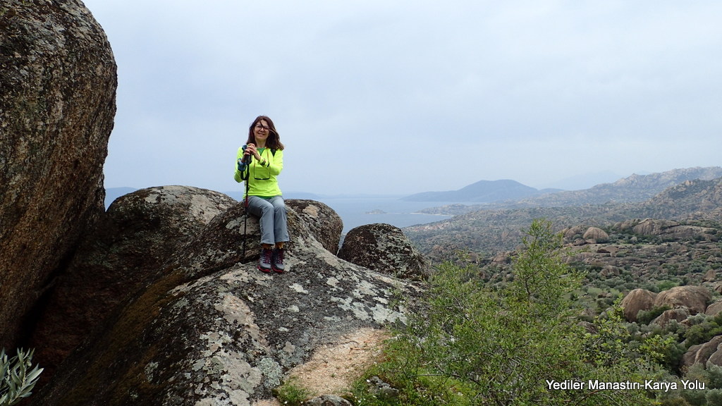 Yediler Manastırına gelmeden önce Bafa Gölü’ne tepeden bakan, rüzgarın ve yağmurun zamanla şekillendirdiği büyük blok taşların bol olduğu bir düzlüğe geldik. Bafa Gölü tüm güzelliği ile ayaklarımızın altında. Antik çağda adı Maiandros olan Büyük Menderes Nehrinin taşıdığı alüvyonlar körfezi delta haline getirince Bafa Gölü denizden 30 km içeride kalmış. Bu alanda mola vermemizin bir nedeni var. Burada bulunan bir mağara içindeki duvarlarda, 8000 yıl öncesi insanlarından kalma duvar resimlerini göreceğiz.