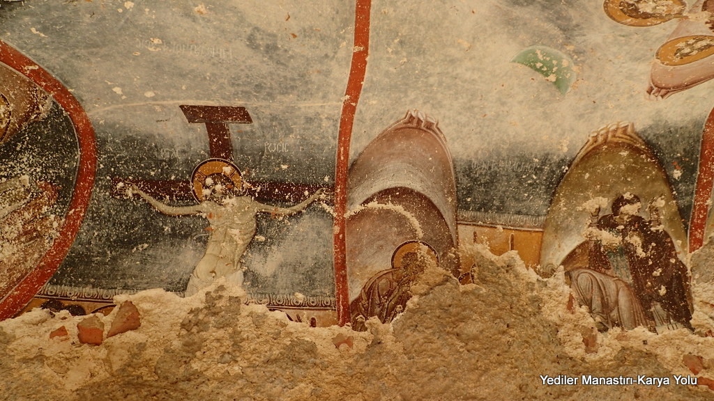Manastırın avlusu olan düzlüğün az ilerisinde fresklerin olduğu bir kaya oyuğu var. Yüzlerce yıldır bu kayanın altındaki freskler doğal şartların avantajı ile nemden ve güneşten saklanabilmiş olsa da yer yer insan eli ile zarar görmüş. Freskler en iyi tavanda seçilebiliyor. Hazreti İsa’nın hayatından bazı sahneler var.