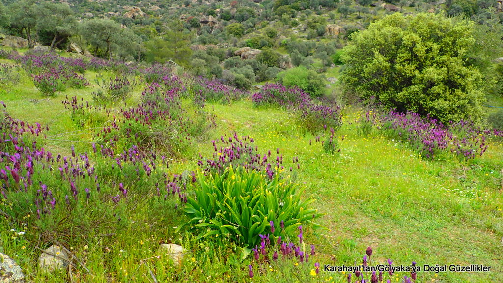 Yürüdüğümüz en güzel rota olarak bugünkü Karahayıt-Gölyaka/Bafa Gölü rotasını seçtik. Doğanın yeşili göz yakıyor, çiçekler coşmuş ve rengarenkler. Yalancı lavantalar, lavanta tarlasında yürüdüğünüz izlenimi yaratacak kadar yoğunlar.