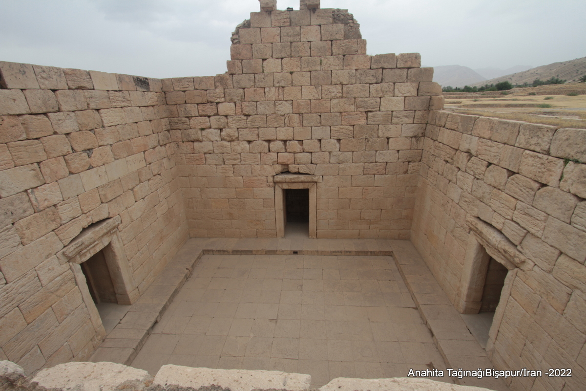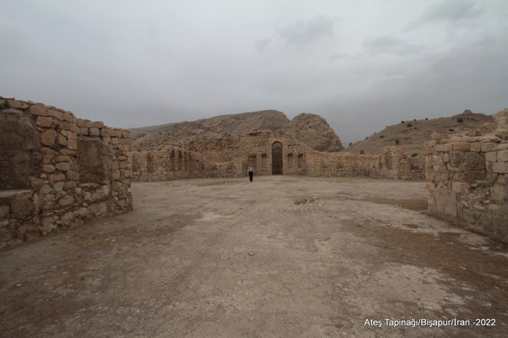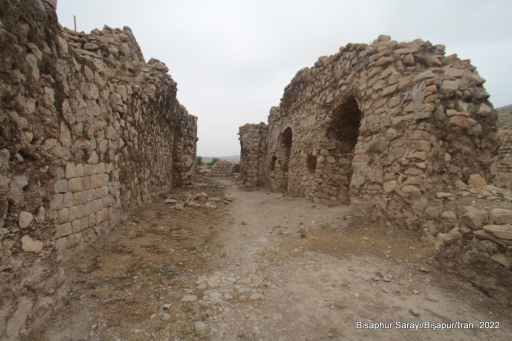 İçeride geniş bir avlu, ortasında havuz, kuzey (Tagh-e Morvarid-İnci Kemer) ve güneyde iki adet eyvan bulunuyor.
