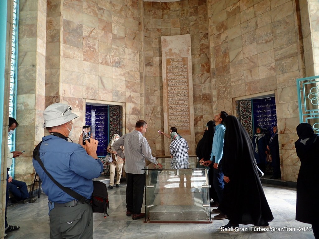 Yemek sonrasında gezimize Sa’di Şirazi’nin türbesini ziyaret ederek başladık. Önemli bir İranlı şair ve nesir yazarı olan Sa’di Şirazi (1210-1292), yazılarının kalitesi, sosyal ve ahlaki düşüncelerinin derinliği ile tanınır. Fars edebiyatının en büyük şairlerindendir. Medrese eğitimi almış ve hayatının büyük bir kısmını seyahatle geçirmiş. Birçok şair, edip, mutasavvıf ve din alimleriyle tanışmış, onlarla sohbet etmiş.