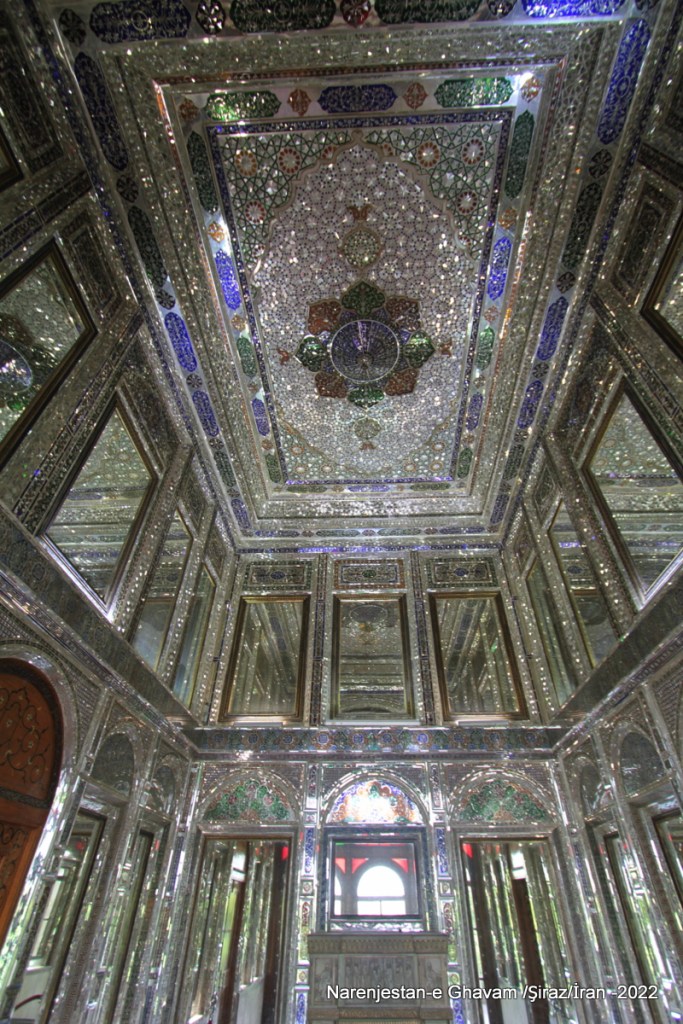 Narenjestan Ghavam kompleksinin ana binası sanatsal bir şekilde dekore edilmiş. Ana bina odalarının duvarlarında, tavanlarında hiç boş ve düz bir alan yok. Tahta oyma, minyatür ve kalem boyama işleri, çini döşeme ve kırık aynalarla dekorasyon gibi aklınıza gelebilecek her türlü sanatsal faaliyet bulunuyor. Fantastik bir iç tasarımın zarafetine şahit oluyorsunuz. Hem bahçe ve hem de ana bina birbirlerini çok güzel tamamlıyorlar. İran’da gezdiğim en güzel yerlerdendi.