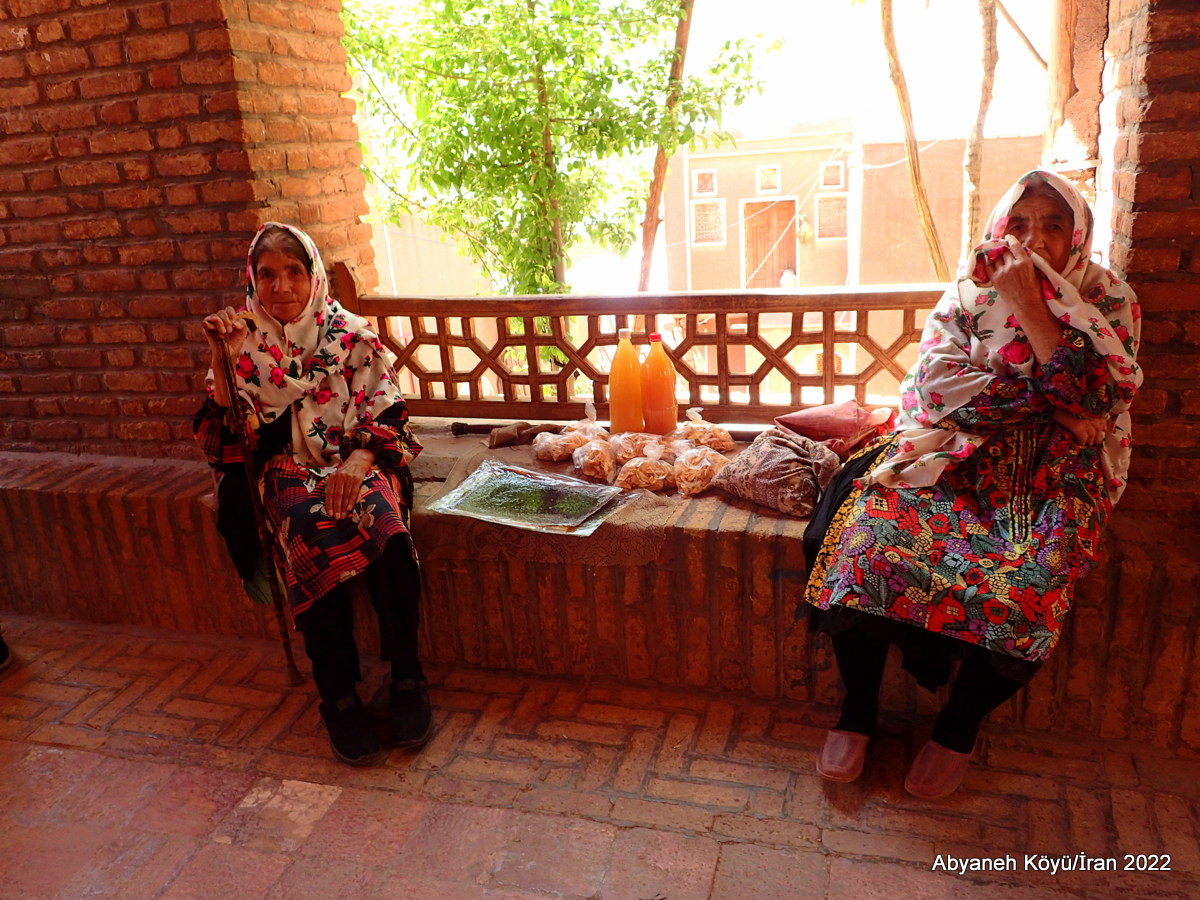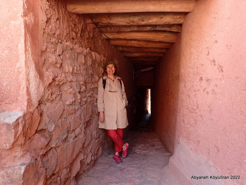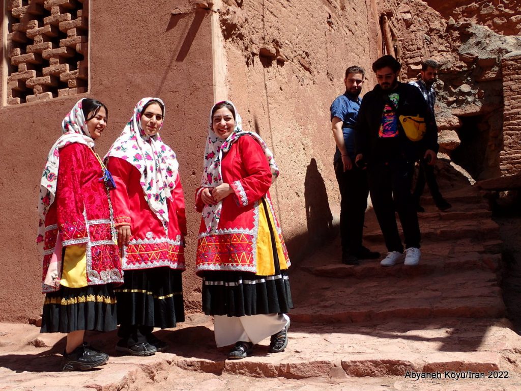 7. yüzyılda Araplar, Pers ülkesini ele geçirdiklerinde bir kısım Zerdüşt halk çevre dağlara ve çöllere kaçıp kendi köylerini kurmuşlar. Kaşan’ın 80 km güneydoğusundaki Karkas Dağlarının eteklerinde yer alan bir vadide varlığını sürdüren Abyaneh adlı köy de bunlardan bir tanesi. Köye vardığınızda özellikle büyük araçların köyün içine park etmesine müsaade edilmiyor. İranlılar tatil günlerinde gezmeyi gerçekten çok seviyorlar. Bizim Abyaneh ve Fin Bahçesi gezimiz cuma gününe denk geldi. Hem bu köyü ve hem de bahçeyi çok kalabalıkla gezmek zorunda kaldık. Daha sakin bir günde çok daha keyif alabilirdik.