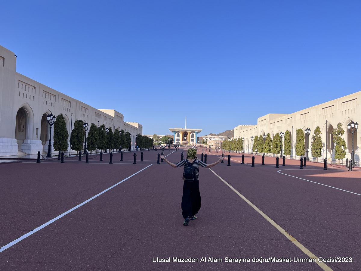 Biz Maskat’da iki gece konaklayıp buradan hem Maskat çevresi şnorkel dalışlarını yaptık ve hem de Maskat şehrini gezdik. İlk gün Daymaniat dalışı sonrasında saat 14:00 gibi Al Mouj Marina’dan hareketle şehrin diğer ucunda (44 km), eski Maskat tarafında bulunan Ulusal Müze gezisi ile Maskat gezimize başlamıştık. Ulusal Müze civarında ücretsiz park yerlerinden birinde park edip önce Ulusal Müze sonra da Al Alam Sarayı ve civarını gezebiliyorsunuz. Bu gezi sonrası Mutrah Corniche (Korniş-Kordon) ve civarını yürüyerek gezip, Mutrah Souq (Mutrah Kapalı Çarşısı) gezisi ile günü tamamlayabilirsiniz.
