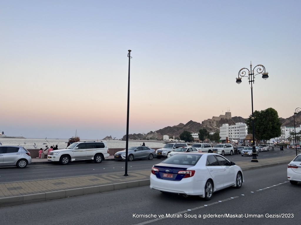 Daha sonra Mutrah Korniş‘e (Mutrah Kordonu’da diyebiliriz) doğru arabanızla yollara düşebilirsiniz. Riyam Anıtına bakan sahil kısmında arabanızdan inip, kordonda güzel bir yürüyüş yapabilirsiniz. Özellikle akşam üstü gün batımında buraları çok güzel oluyor.