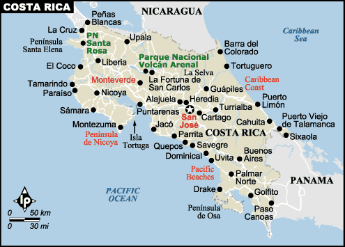 Ülkenin doğusu-batısı iki ayrı deniz ile çevrili, kuzey kısmında Nikaragua, güney kısmında ise Panama ile komşuluk var. Yüzölçümü 51000 km2 (Konya ilimizin yüzölçümü 40800 km2). Ülke nüfusu ise 5.200.000 kadar. Para birimi başlarda Peso iken 1896 yılından beri Colon’a dönüştürülmüş. Bu ülke ile ilgili kabul edemediğim tek gerçek budur; Sen git 400000’lerde gezen yerli nüfusu 8000’lere kadar indiren yani yerli halkına soykırım yapan adamın, Kristobal Colon’un, ismini para birimine ver!!