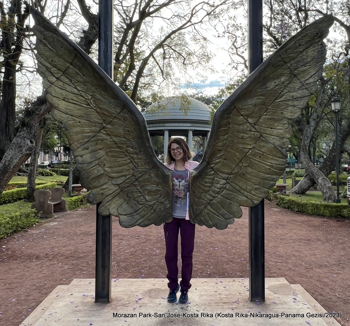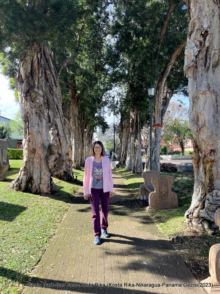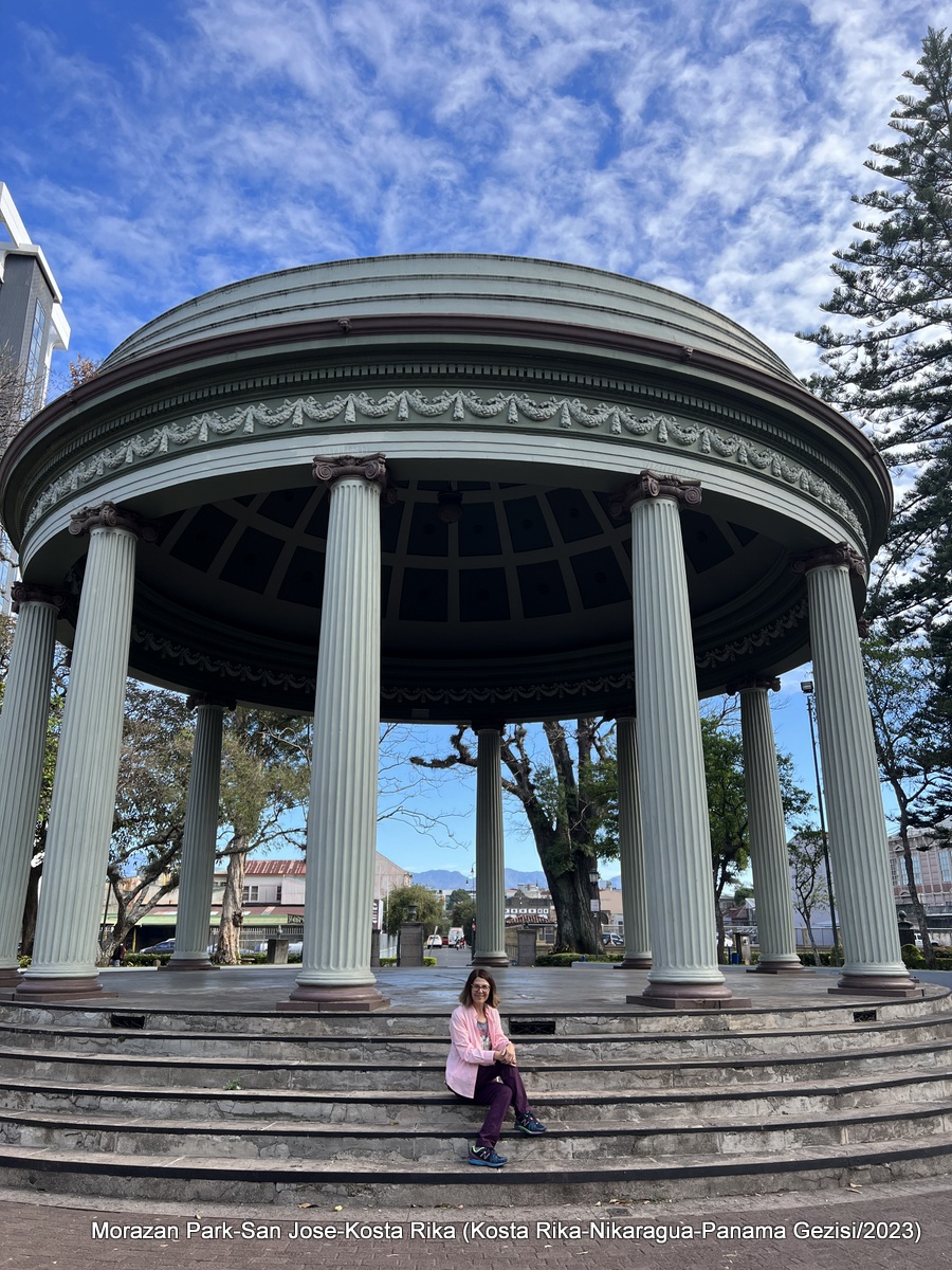 Yazının bu bölümünde San Jose şehir gezisini anlatarak bu bölümü kapatabiliriz. Ülkenin 5,2 milyon nüfusunun 1,6 milyonunun yaşadığı San Jose ülkenin aynı zamanda kültür başkenti. Şehir çok sayıda müzeye ve parka ev sahipliği yapıyor. Şehrin merkezinde olan otelimizin (Aurola Holiday İnn) karşısında bulunan Morazan Parkı hanımla benim ilk ziyaret ettiğimiz yer oldu. Sabahın erken saatinde yürüyüşe çıktığımız bu park 1830-1839 yılları arasında Orta Amerika Federal Cumhuriyeti Başkanlığı da yapan siyasetçi Francisco Morazan adını taşıyor. Parkın bir kapısında Simon Bolivar’ın, diğer kapısında ise Olger Villegas-Cruz tarafından yaratılan ve “El Beso” (Öpücük) adlı heykel bulunuyor. Parkın ortasında ise 1920 yılında kurulmuş Müzik Tapınağı bulunuyor. Burada zaman zaman konserler oluyormuş, bize denk gelmedi tabii ki. Çok güzel bir park.