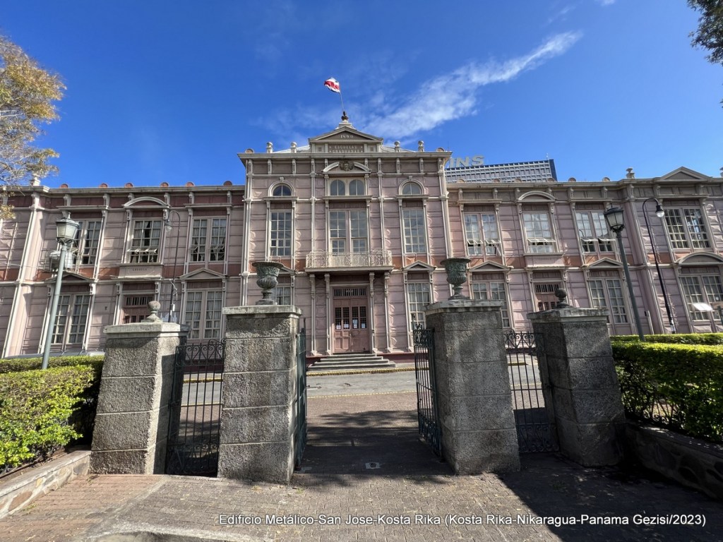 İki parkın karşısında da önemli binalar var. Bir tanesi Edificio Metálico (Metal Bina) ve 1892’de Belçika’da dövülmüş metal parçalardan inşa edilmiş. Bu demir parçalar San José’de monte edilerek bina 1894’te tamamlananmış. Bina bugün okul olarak hizmet veriyor.