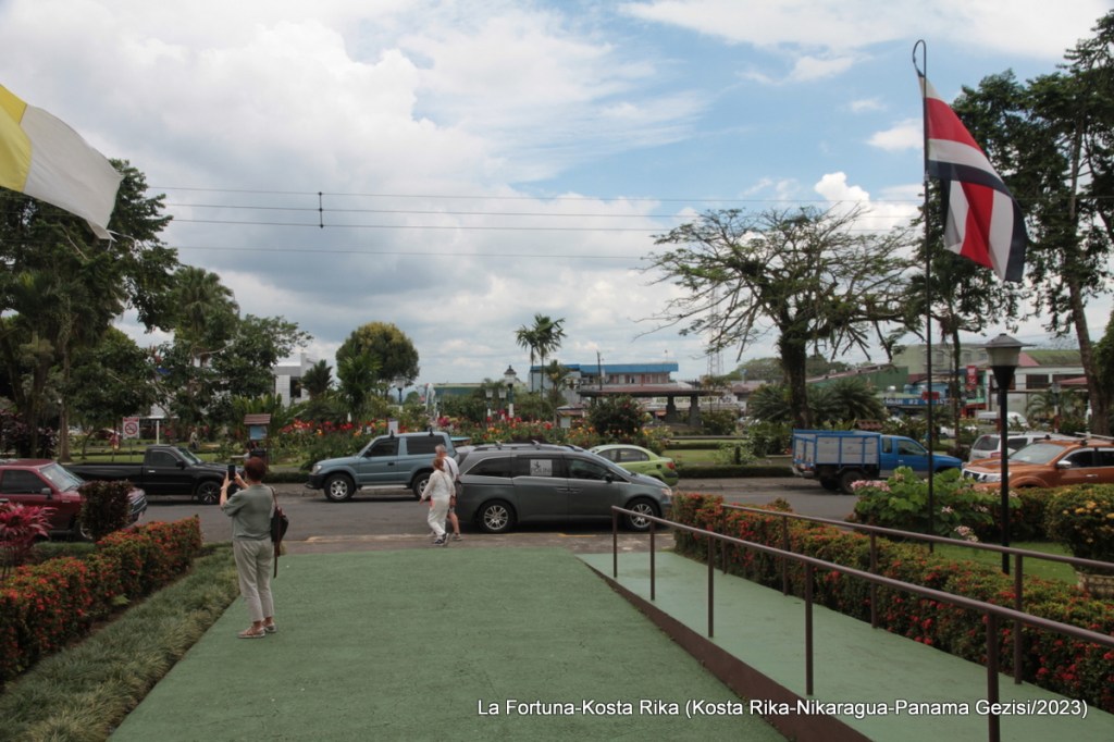 Arenal Ulusal Parkı gezimiz sonrasında La Fortuna kasabasına gidildi. Burası 15-20000 civarında bir nüfusa sahip. Yerleşim yeri olarak varlığı eskilere dayanmıyor. Arenal Volkanı nedeniyle turistik önem kazanmış. Burada kısa bir şehir turu yapılıp, yemek yenecekti. Şehir merkezde bir kilise, çevresinde büyükçe bir park ve birbirine paralel birkaç caddeden ibaret.