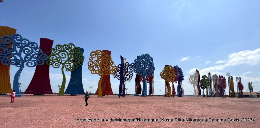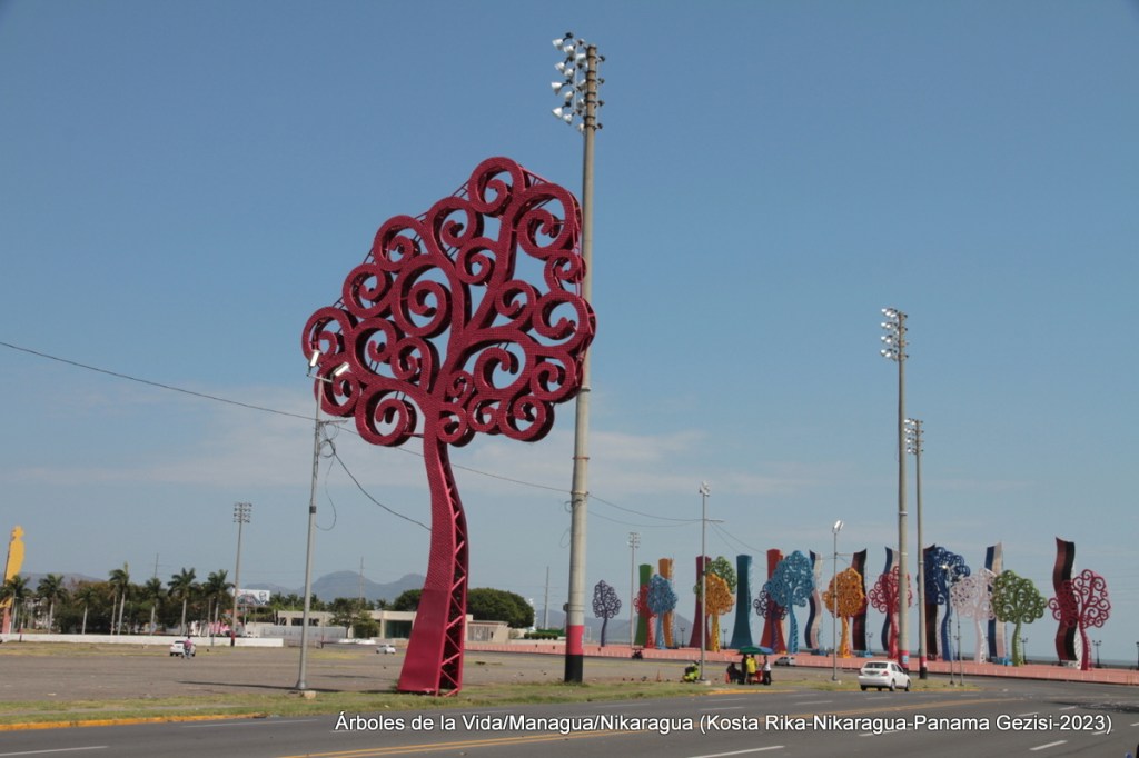 Yaklaşık 140 soyut ve parlak renkli ağaç heykeli, Avusturyalı ressam Gustav Klimt’in “The Tree of Life” adlı eserinden ilham alınarak yapılmış. En güzel örneklerini Puerto Salvador Allende limanına yakın Paseo de los Estudiantes adlı açık park alanında görüyorsunuz. Her birinin maliyeti 20.000-25.000 USD olduğu yazılıyor. Çoğu Nikaragua’lı bunu israf ve gereksiz buluyor. Doğrusu ben sanatsal olduğunu düşündüm.