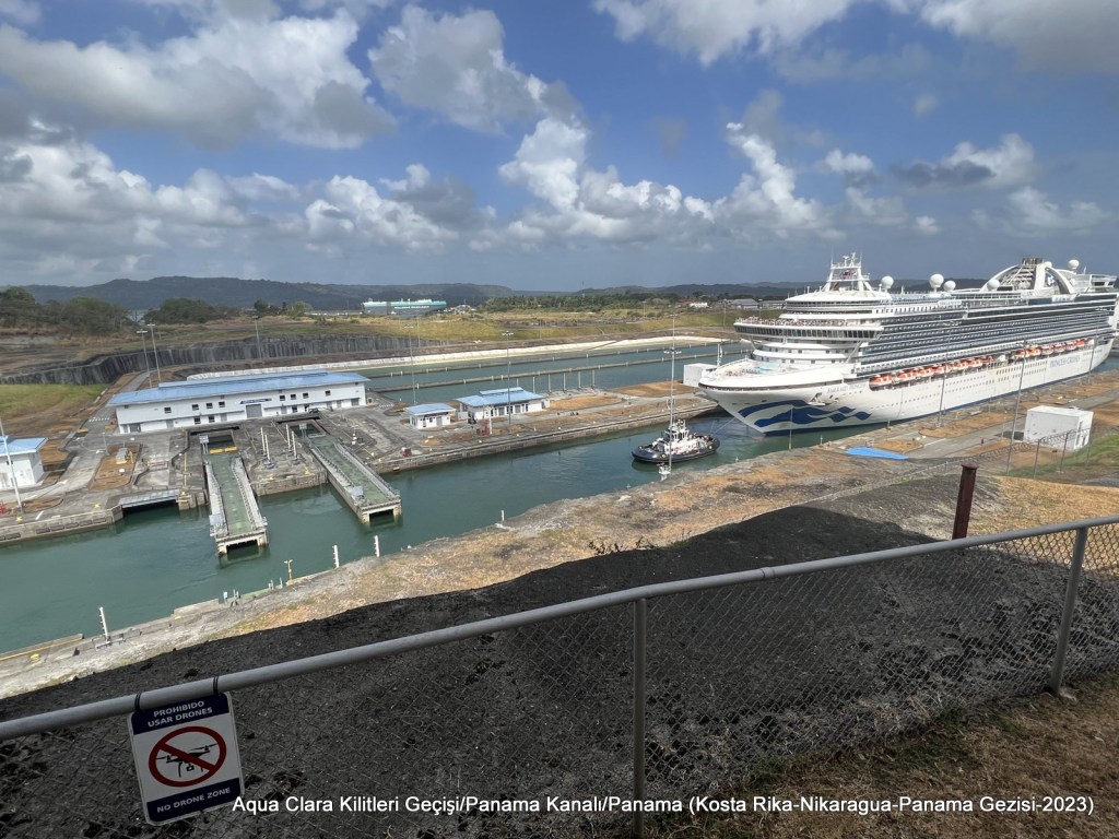 Bu bilgiler sonrası Panama Kanalı gezi izlenimlerime gelince; Bir kere korkunç derecede etkileyici bir yerdesiniz. Aşağıya kendi çektiklerimden bir video da eklemiş bulunuyorum. Panama Kanalını ziyaret etmek için birkaç alternatifiniz var. Bunlardan klasik olanı trenle Colon‘a gitmek ve orada Gatun Kilitlerinden gemi geçişlerini izlemek. Ancak tren seferleri pandemi döneminden beri yapılmıyor. Biz bir umut, “tren seferleri açılır mı?” dedik ve son güne kadar bekledik ama seferler açılmadı. Otobüsle Colon’a gittik ve oradan da yeni kilit sistemi olan Aqua Clara Kilit sisteminde ziyaretçi merkezinden geçişi izledik.