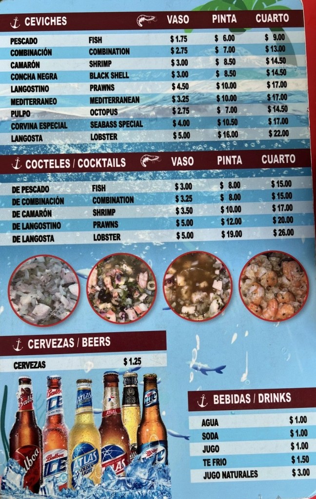 Ceviche narenciye ve baharatlarla marine edilmiş balık veya kabuklu deniz hayvanlarından oluşan bir yemek. Buraya has değil tabii ki. Doğrusu ben çok sevmedim ama beğenenlerimiz vardı.
