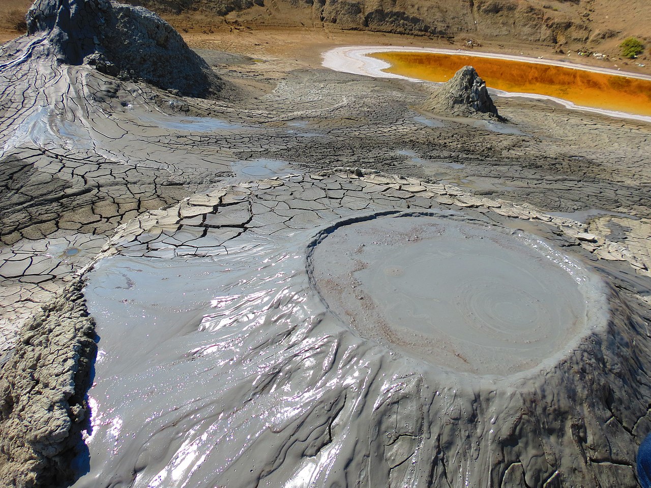 Azerbaycan, ülke genelinde geniş alana yayılmış çamur volkanlarına sahip. Dünyadaki 700 çamur volkanından 350’si Azerbaycan topraklarında bulunuyor. İşte Kobustan Rezerv Alanı yakın çevresinde bu çamur volkanlarından güzel örnekleri ziyaret etme olasılığınız var. Biz de bu çamur volkanlarından bazılarını görmek istiyorduk ve programa da koymuştum. Bu alanlara yağmur yağmadığı zamanlarda bir ihtimal aracınızla gidebiliyorsunuz. Ama yağmurlu zamanlarda ancak 4*4 çeker araçlarla gitmeniz gerekiyor. O bile problem olabiliyormuş. Bu nedenle havanın kapalı olmasına razıyım ama yağması kötü olacaktı. Hava bize o gün Kobustan Rezerv Alanını, ahmak ıslatan tarz yağmurla gezmemize müsaade etti. Ama korktuğum başıma geldi ve öğleden hemen sonra şiddetlenen yağmur, yukarıda fotoğrafını gördüğünüz çamur volkanlarına gitmemize izin vermedi. Biz de 4*4 araçlı şoför kiralamaya çalıştık. Ama Azeri şoför bizden öyle bir fiyat talep etti ki doğrusu daha ilk günden ayak üstü kazıklanmak da işimize gelmedi. Başka zamana görmek nasip olsun diyelim artık! Ama siz Kobustan Rezerv Alanına ziyaret planladığınızda havanın müsaade ettiği ölçüde çamur volkanları gezisi mutlaka yapın.