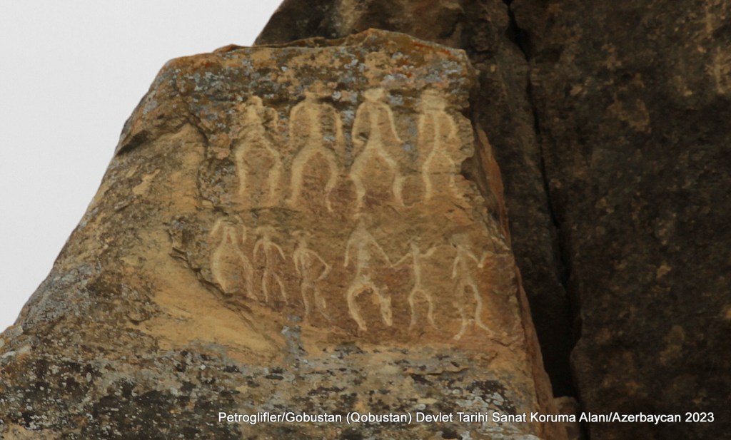 ilkel sanatın gelişme dönemi kabul edilen Üst Paleolitik (40.000-15.000 yıl önce), Mezolitik (MÖ XIII-VIII bin yıl), Neolitik (MÖ 7.-6. binyıl) ve takip eden sonraki dönemlere ait çizimlerde yaban atları, yabani geyikler, kadın ve erkek savaşçılar, av sahneleri, şaman tasvirleri, tekneler ve üstünde insanlar, keçiler, domuzlar, ok ve yay, Azerbaycan dansı Yalli yapan insanları anımsatan toplu insan tasvirleri kayalara kazınmışlar. Çoğu yerde en eski tasvirler, daha yeni dönemde yapılan tasvirlerle kaplanmış. Bu nedenle bazen çizimler birbiri içine karışmış. Doğa ve zaman ise petrogliflerin bir kısmını silmiş.