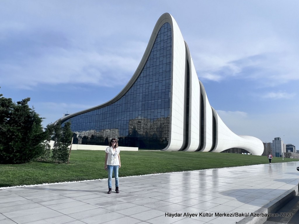 Çalışmalarına 2008 yılında başlanan Haydar Aliyev Kültür Merkezi’nin içinde konferans salonu, kütüphane ve medya merkezi, müze, kapalı otopark, hizmet merkezi ve galeriler ile yapay bir göl ve göl kafeteryası bulunuyor. Hazar Deniz’inin yükselişi ve dalgaları mimariye yansıtılmış. Bu binanın önünde bulunan açık hava kafeteryasında sıcak ya da soğuk bir şeyler içerek modern mimarinin baş yapıtlarından sayılan bu binanın keyfini çıkartın. Bizim program yoğun olduğundan müze gezisini yapmadık.
