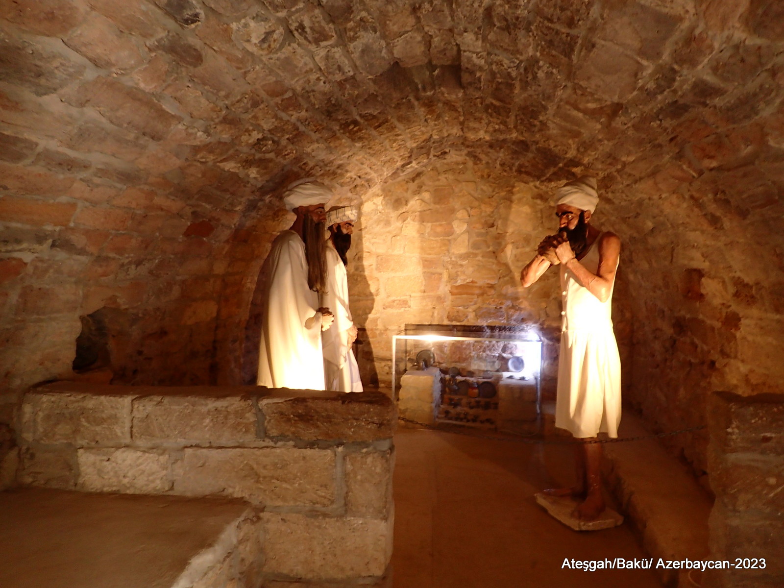 Ateşgah’ta yanan ateş etrafında küçük odalar bulunuyor. Bu odaların küçük penceresi ortada yanan ateşi görüyor. Eskiden haç için buraya gelen Zerdüştler bu odalarda konaklar, pencereden sürekli ateşi izler ve kendilerine çeşitli işkenceler yaparak ibadetlerini gerçekleştirirlermiş.