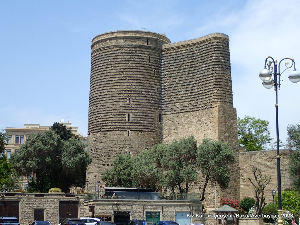 İçerişehir’in güneydoğusunda büyük bir kule dikkati çeker. Kız Kalesi adı verilen bu anıt yapı; silindirik, yüksek bir kule ile ona ekli duvar bölümlerinden oluşuyor. Bakü’nün sembolü haline gelen ve eski kentin siluetine önemli bir katkı sağlayan Kız Kalesi, bugün denizden ayrı bir konumda gözüküyor. Ancak özgününde Hazar Denizi’nin kıyısında yapılmış. 19. yüzyılın ikinci yarısına kadar bu konumunu koruyan eser, daha sonraları deniz seviyesindeki düşme ve yapılan dolgular sonucunda Hazar’dan kopmuş.