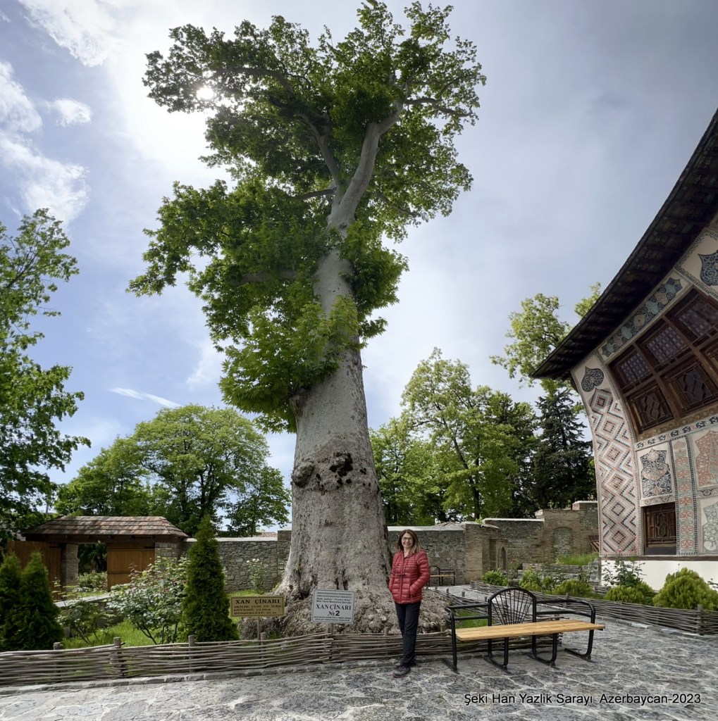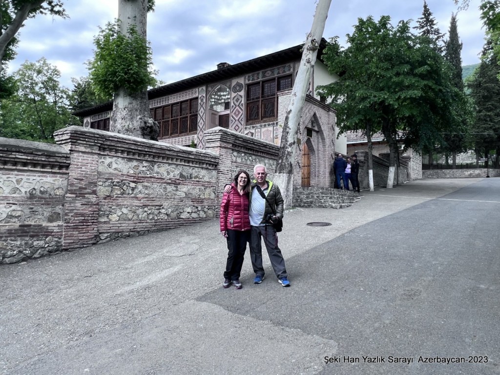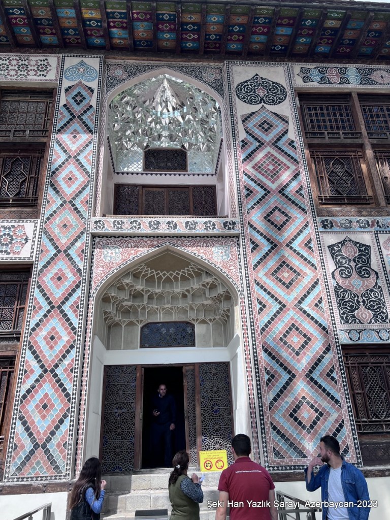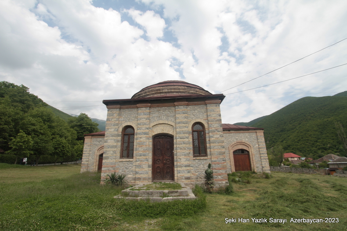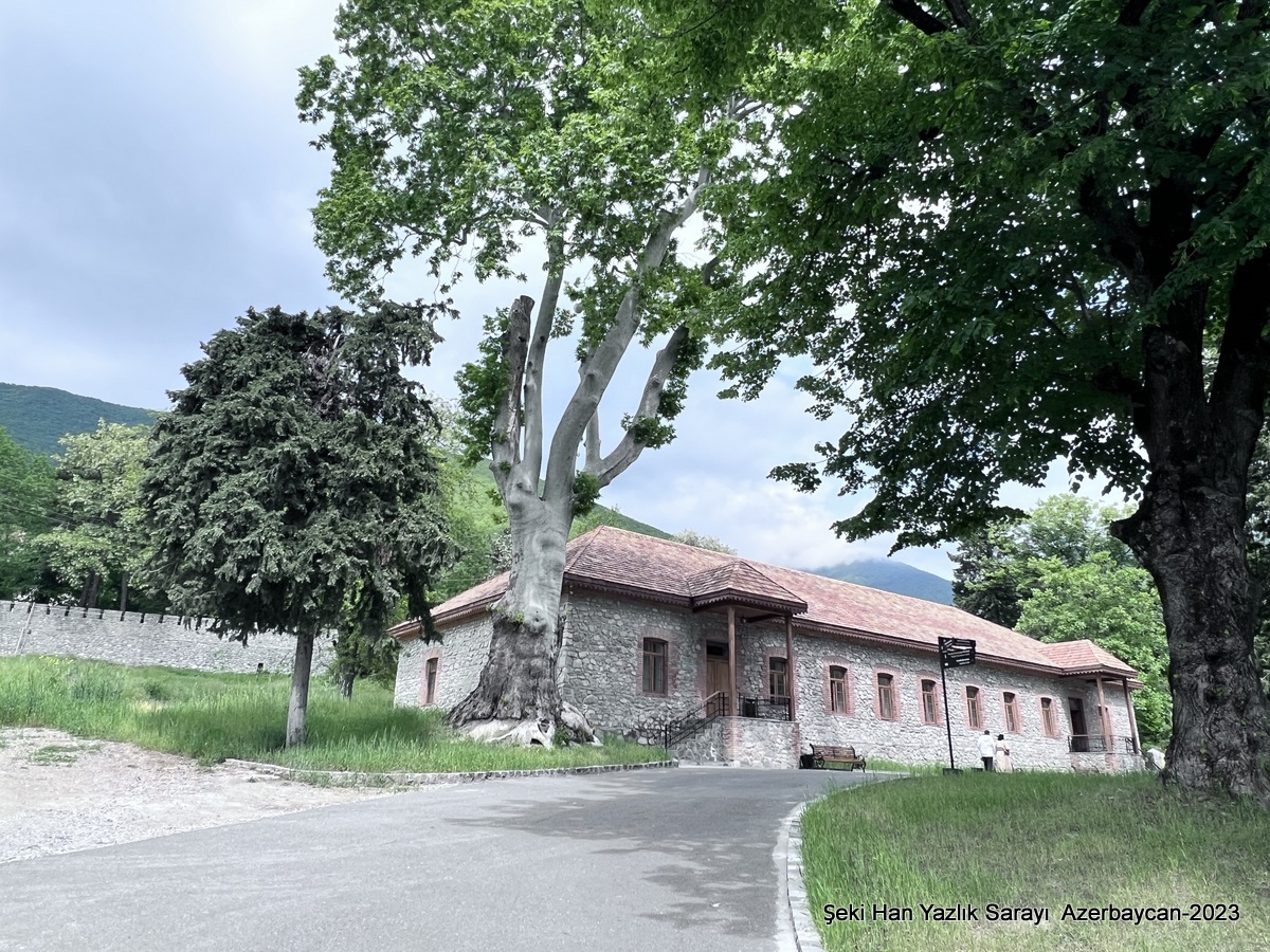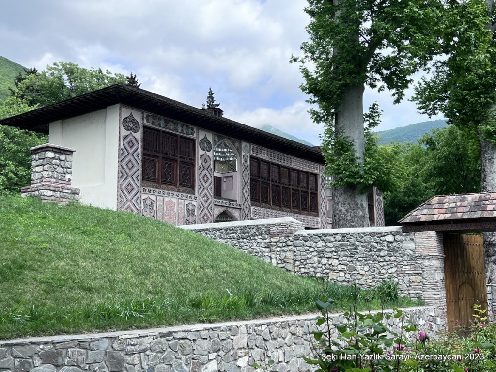 Alan gezimizin ana parçası Şeki Hanları Sarayı. Şeki Hanları’nın 2 sarayı var. Önünde bulunduğumuz yer Şeki Hanları Yazlık Sarayı. Bir de daha aşağılarda Kışlık Saray var. Yazlık Saray gerçekten çok güzel ve estetik görünümde. Sarayın sadece bahçesinde fotoğraf çekmeye izin var. İçeride herhangi bir şekilde ve herhangi bir makine ile fotoğraf çekmeye müsaade etmiyorlar.