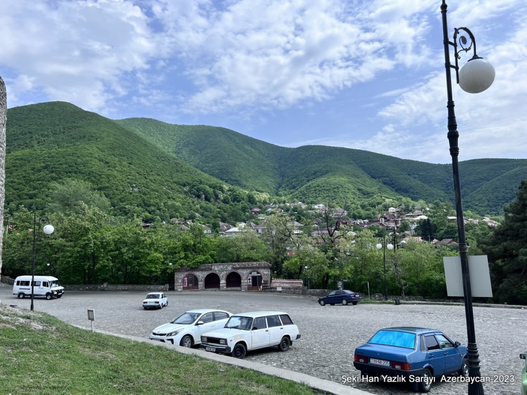 Aracımızı kiraladığımız firmanın Qebele’de bir temsilciliği var. Aracın durumu araştırılırken bizim de Qebele’de kısa bir tur atma şansımız oldu. Aracın kısa sürede tamir edilemeyeceği anlaşılınca bize yeni bir araç verildi. Bu araçla birlikte bu sefer Şeki’ye doğru yollara düştük. Yolumuzun uzunluğu 90 km. Ancak Qebele-Şeki yolu da çok güzel manzaralar sunuyor.