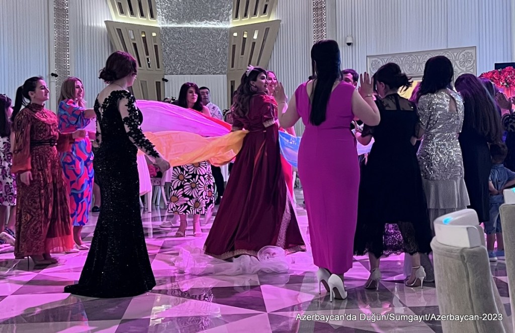 Azerbaycan’da düğün eskiden hem erkek ve hem de kadın tarafı olarak ayrı ayrı yapılabiliyormuş. Yani iki düğün yapabiliyorlarmış. Günümüz şartlarında Azerbaycan’da da düğünü artık ortak yapıyorlar. Bizim düğünü Azerbaycan’da doğal olarak gelin tarafı yapıyor, damat ise Türkiye’de ayrıca düğün yapacak. Bizim kızın düğünü mecbur iki düğün şeklinde oldu. Azerbaycan’da geline altın takmak, bilezik takmak, boynuna para iliştirmek gibi bir adet yok. Biz ülkeden gitmeden altınımızı almıştık ama bizim geline “Cumhuriyet altınını da aldım” diye hava atarken öğrendim ki onlarda düğünde altın takmak, keseye altın atmak adeti yokmuş. Gelen “qonaklar” yani konuklar hediye, takı yerine düğün sahibine önceden belirlenen miktarda para veriyorlar. Orada milletin içinde altın takmak görgüsüzlüğünü yaşamak bir yandan, bir de geline “Cumhuriyet” demişim ama “Çeyrek” altını takarken yakalanmak vardı. Ucuz kurtulduk!!
